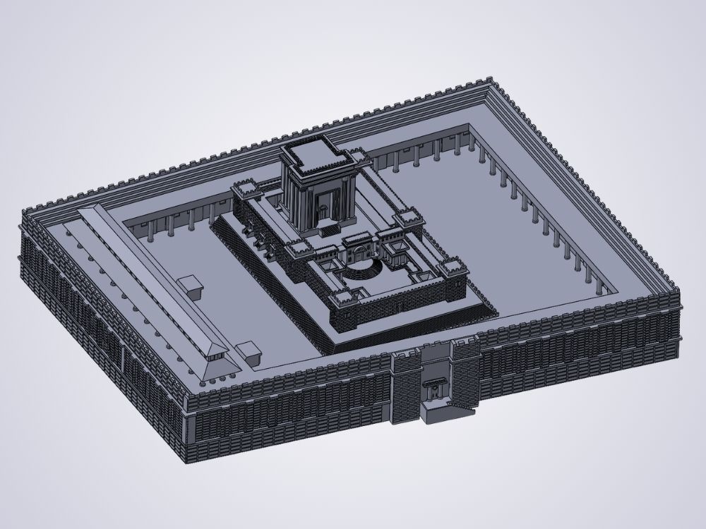 A detailed scale model of the Beit Hamikdash was built and optimized from complex STL geometry for manufacturable 3D printing.