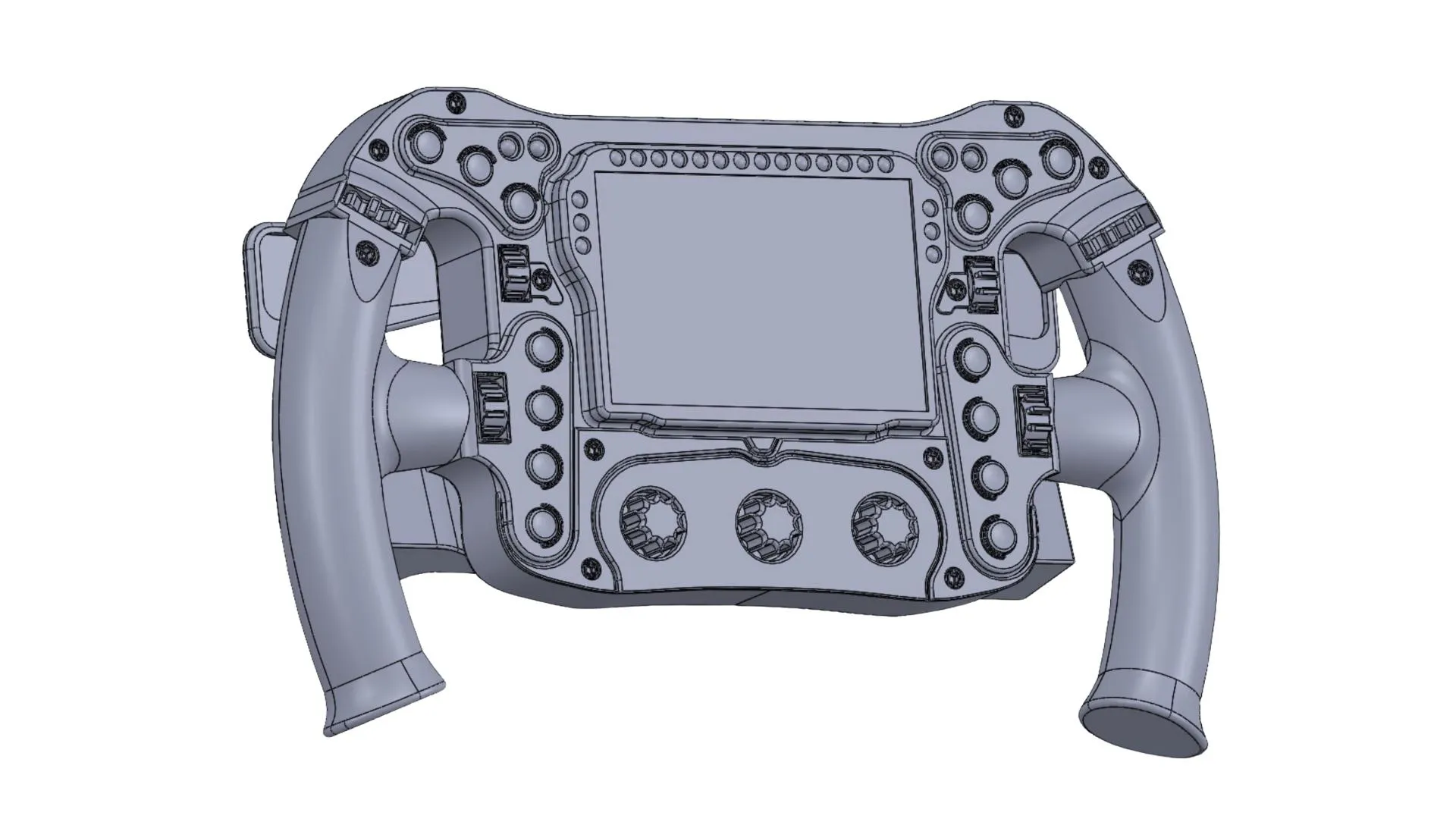 Highly detailed CAD model of a Formula 1 steering wheel developed as part of a larger F1 project, focusing on precision geometry, full component integration, and realistic control layout.